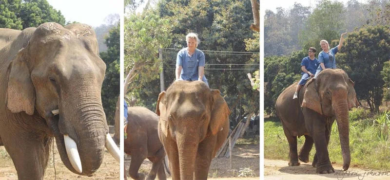 When we were in Thailand, we had the pleasure of visiting BaanChang Elephant Park in Chiang Mai. Seeing so many elephants up close was really amazing… this blog post can't do the experience justice. Suffice it to say that these creatures were beautiful, we learned so much, and I'll always be grateful for the time we spent there. Also, riding an elephant is awkward.