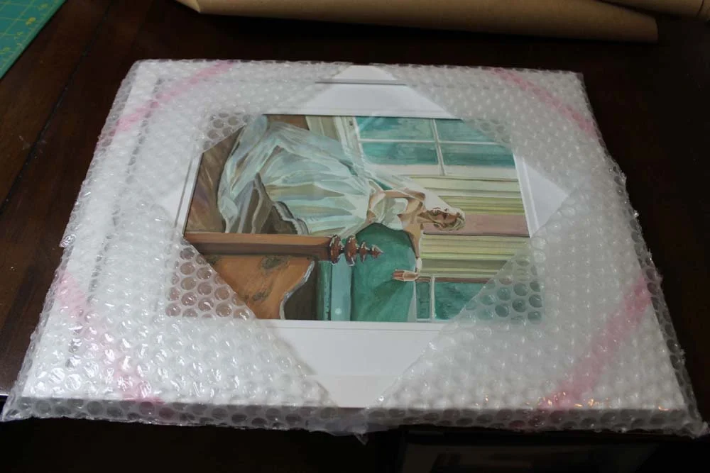 Here she goes, nice and framed, getting all packed up for delivery! So long for now, dear friend! You are lovely!