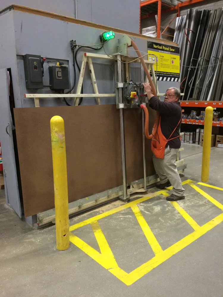 The original looks like it was painted on something smooth, so I decided to paint this on board. We decided to make the painting 30x30". I couldn't find pre-made wood panels that large, so I made my own. Here's Phil at Home Depot helping me with Step 1: