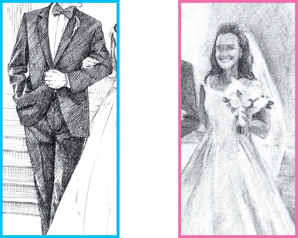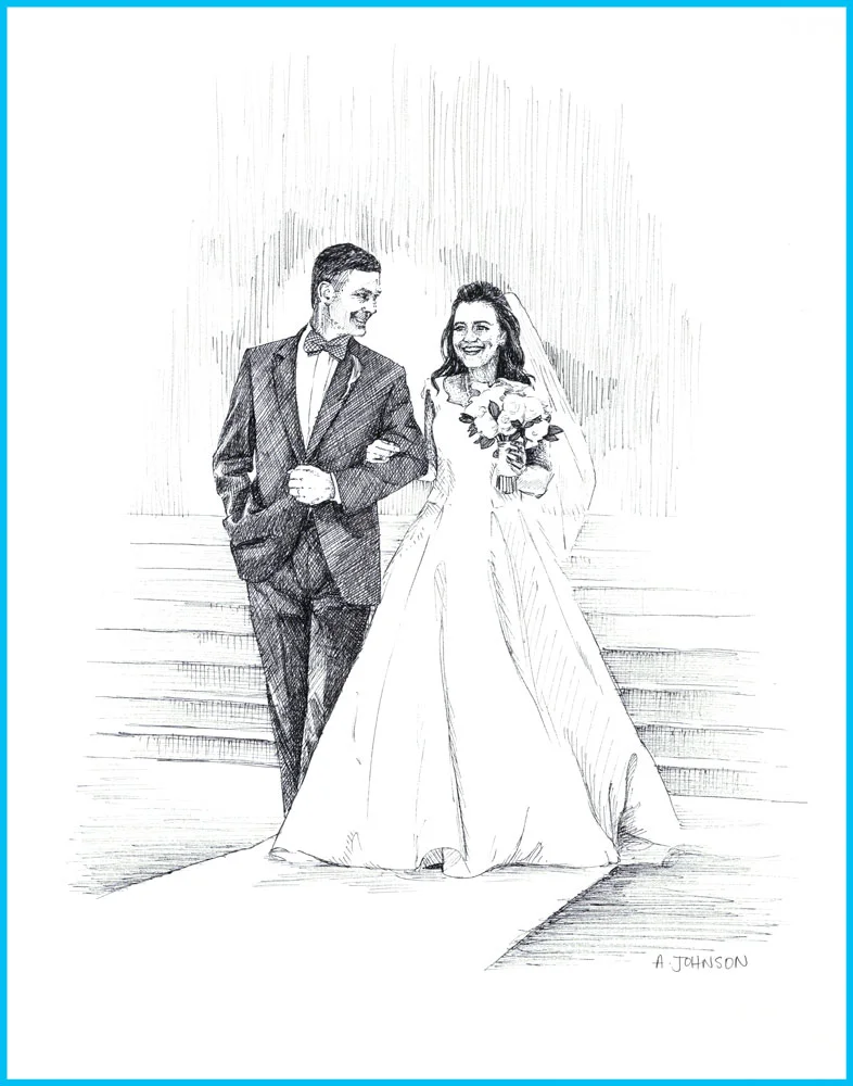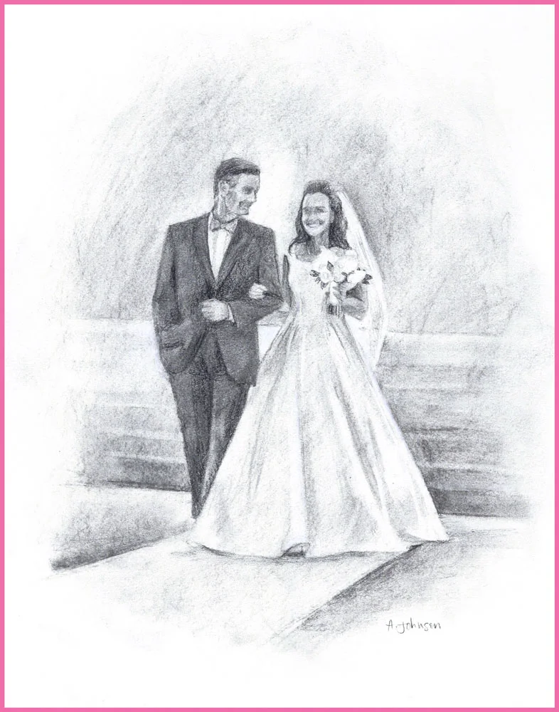 A lovely friend of mine commissioned a drawing from her wedding, but couldn't decide what medium would best represent the moment she chose.